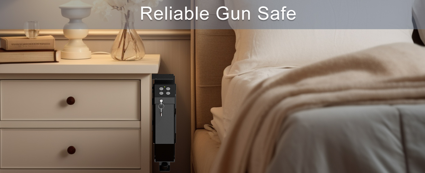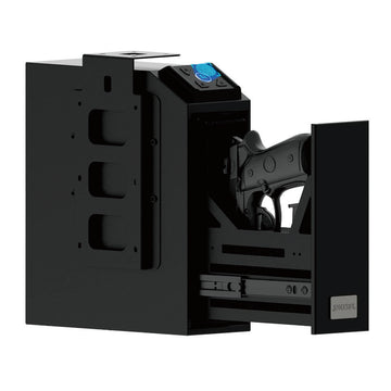 Gun Safe Biometric Quick Access Handgun Firearm Safes for Pistols Drop Down Single Gun Safety for Nightstand Wall Mount Bedside Desk Vehicle Bed Personal Safe with Fingerprint Keypad Lock Key Lock