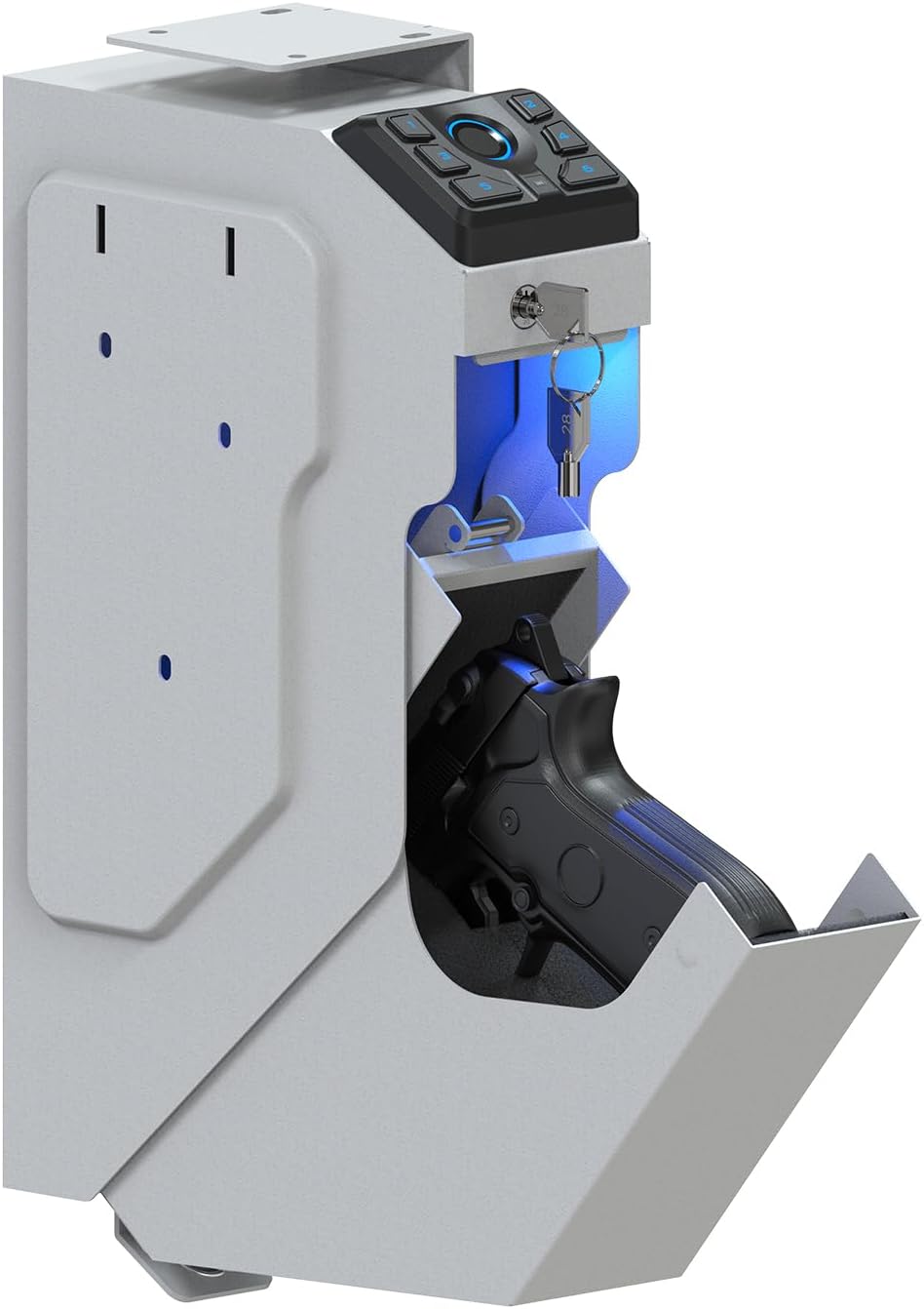 VERPROOF Biometric Gun Safe for Handgun Drop Down Pistol Safe, Smart Pistol Safe with Fingerprint, PIN Code, Key Access for Nightstand, Desk, Bedside, Low-Vis Mode, Type-C Power (White)