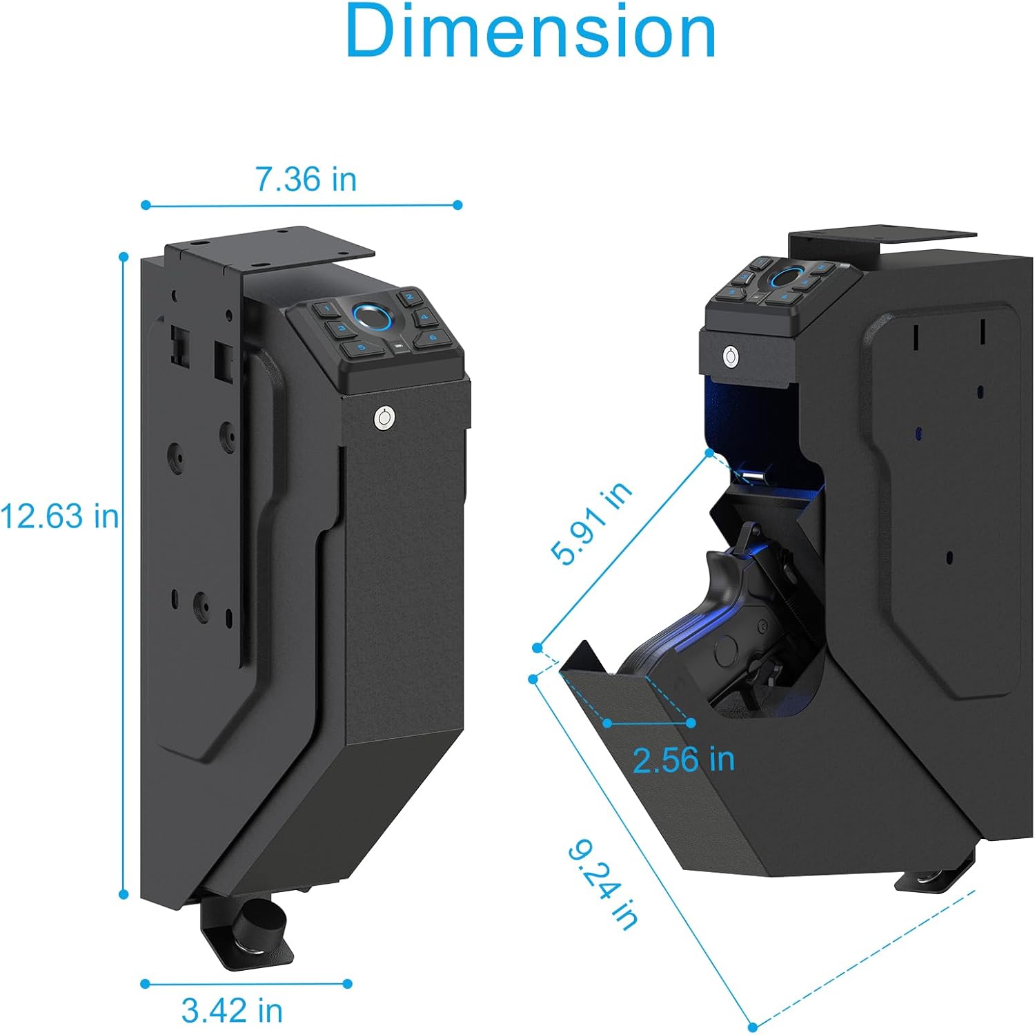 - 【Low-Vis Mode & Concealed Setup】Perfect for discreet environments, this biometric bedside gun safe can be easily mounted under a desk, inside a closet, or beside a nightstand. Activate Low-Vis Mode to turn off keypad and interior lights for stealthy nighttime operation—making it an ideal gun lock box for quick yet hidden access.
