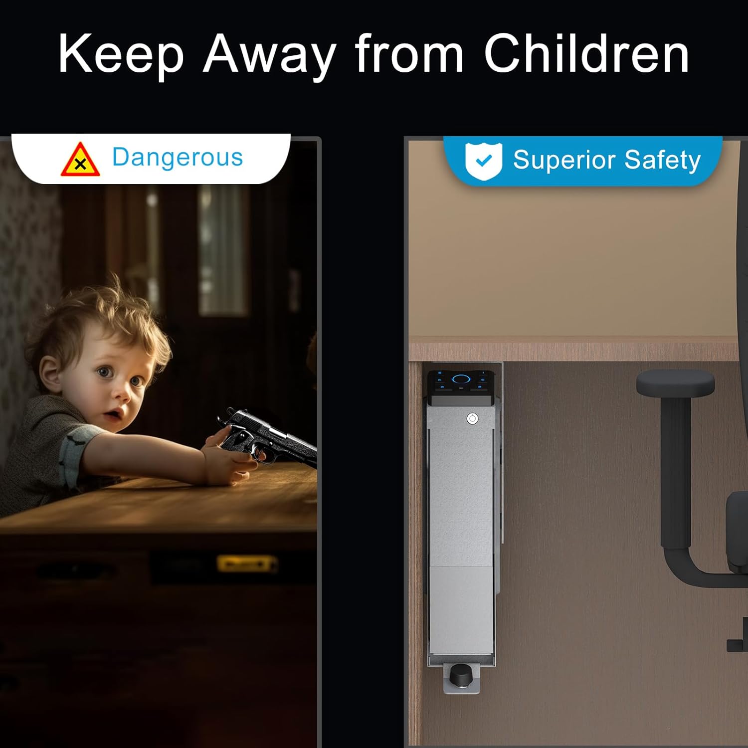 - 【Prevent Child Access】Keep your loved ones safe with this pistol safe that’s designed to prevent accidental access by children. Whether you use it as a bedside gun safe for handgun, a hidden gun storage solution, or a gun safe for car, you can count on secure and responsible firearm storage wherever you go.