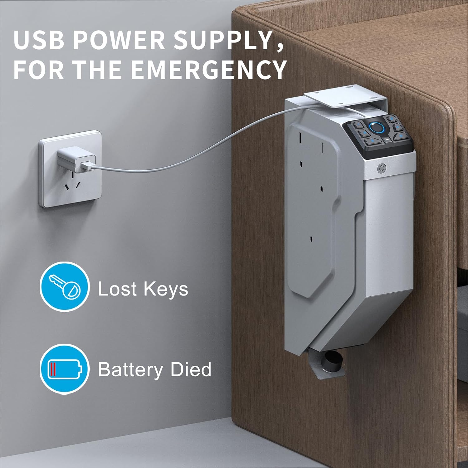- 【Type-C Backup Power Port】Stay protected even if the batteries run low. This fingerprint gun safe features a USB Type-C emergency power port, ensuring uninterrupted access. It’s a vital backup feature whether you're using it as a car holster, bedside gun safe, or airsoft gun safe.
